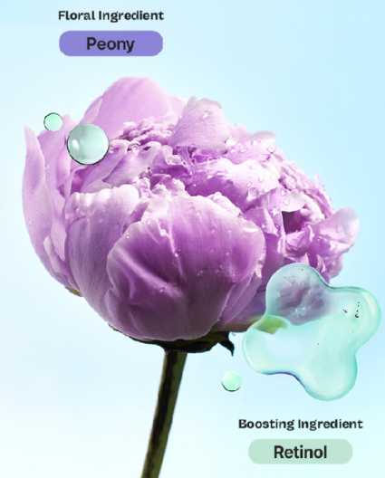 Tem um cuidado poderoso com o sebo e sinergia de elasticidade, com extrato de peônia para controle de oleosidade, água de flor de matricária para acalmar e retinol para cuidar da elasticidade.